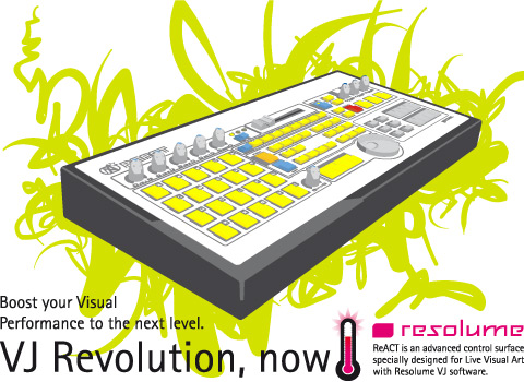 ReACT ist ein einzigartiges Eingabegerät das speziell für den Live VJ Bereich entwickelt wurde. Dieser kleine, leichte und robuste Controller wurde speziell für Resolume VJ Software entwickelt. Der erweiterbare, MIDI basierte Controller und Resolume ergänzen sich perfekt und bilden gemeinsam die perfekte VJ Lösung.