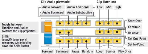Transitions active Layer Transition Buttons: Change and set the Transition for the Clip in the active Layer. |